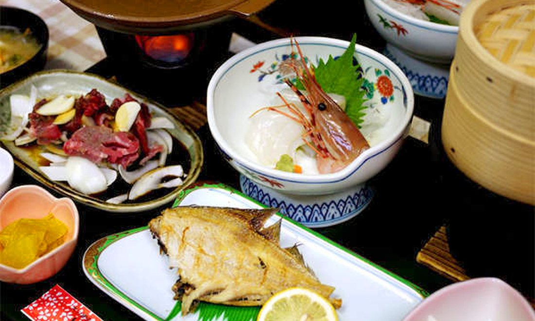 青森の新鮮な食材を使用し、女将が心を込めて作った和食膳を、レストランにてご用意致します。